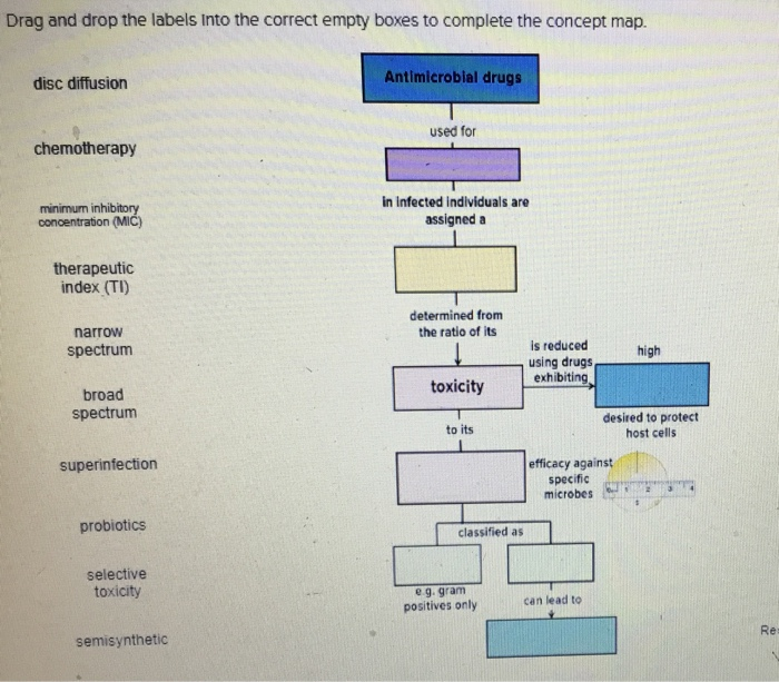 Antimicrobial Drugs Concept Map Solved Drag and drop the labels into the correct empty boxes : This last observation leads to the widely acknowledged evidence that the host immune defenses and antimicrobial drugs must act synergistically to successfully combat infections. Many . A numbered vial containing 15 ml. of a solution of antimicrobial drugs or placebo with a similar appearance was assigned in sequence to each patient eligible for the study. The senior surgical .