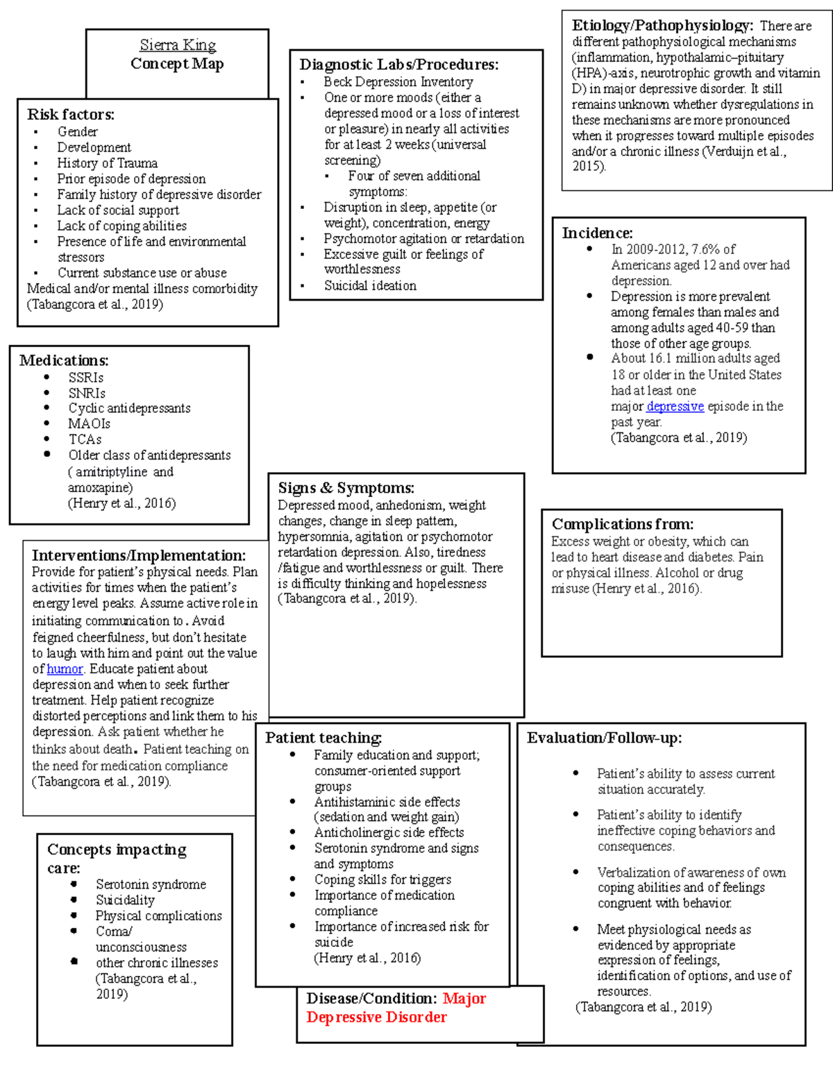 Concept Map For Major Depressive Disorder Clinical Concept map Major Depressive disorder (wk 7) Concept : Background: Depressive disorders are highly prevalent, have a detrimental impact on the quality of life of patients and their relatives and are associated with increased mortality rates . Major depressive disorder is the most widespread mood disorder in the world. Also called clinical depression, or just depression, it’s when you have symptoms of low mood or hopelessness for at .