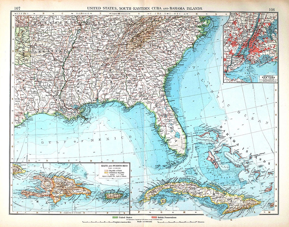 Antique Map SOUTH EAST AMERICA USA UNITED STATES FLORIDA CUBA