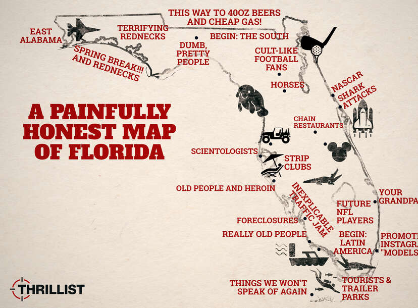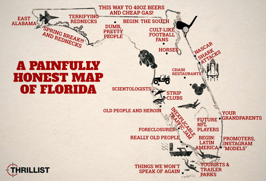Honest Map of Florida With Miami, Orlando and the Florida Keys