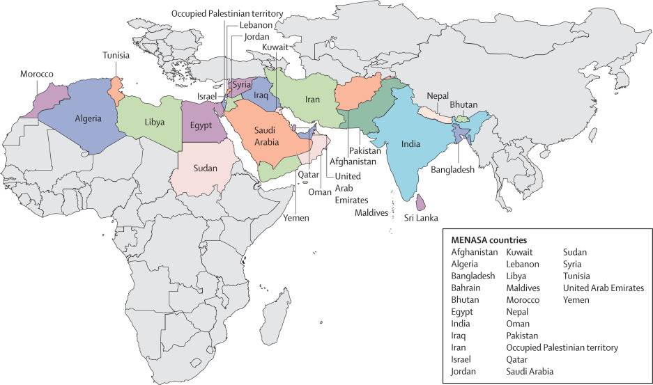 Map of the Middle East and North Africa (MENA) region. The MENA