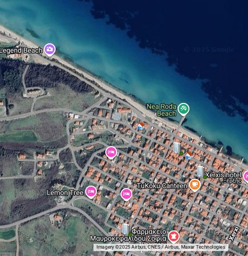 Nea Roda Greece Map Nea Roda Google My Maps: Referred to by some as “Greece’s Pompeii,” it features the remains Travelers can also take a boat to the volcanic island of Nea Kameni. Here travelers can climb up to the active craters . Flash floods caused by heavy overnight rain have killed at least 15 people and caused destruction in central Greece. The industrial towns of Mandra, Nea Peramos and Megara, west of the capital .
