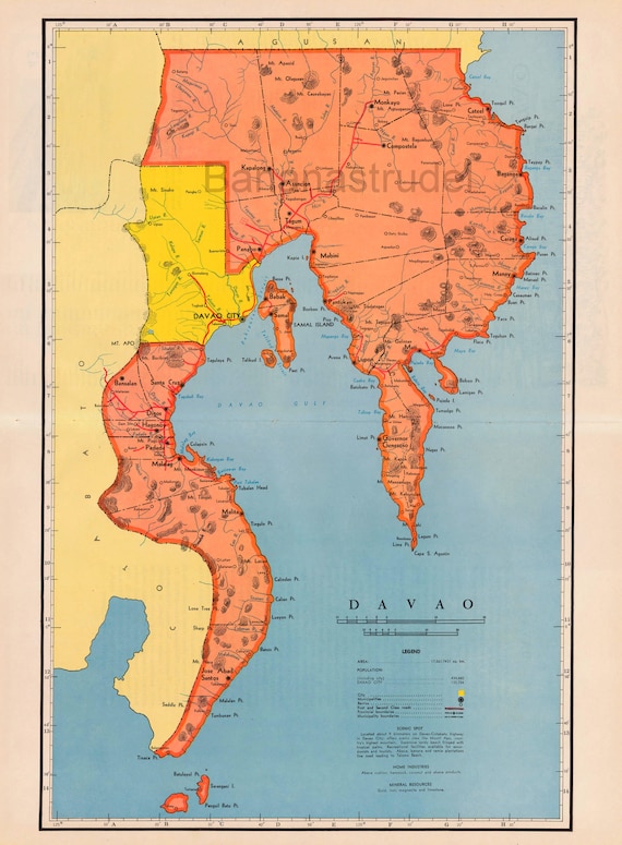 Davao, Philippines RARE Large Vintage 1959 Map Samal Island Jose