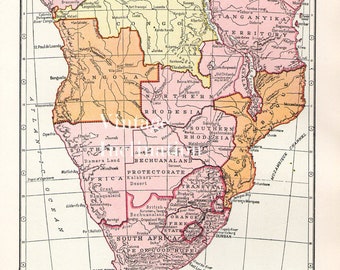 Antique 1950s SOUTH AFRICA Vintage Map Atlas Page Etsy | Vintage
